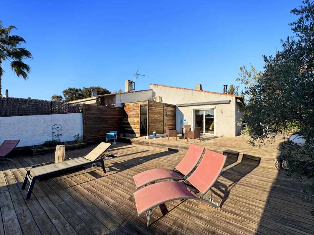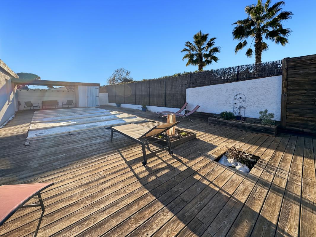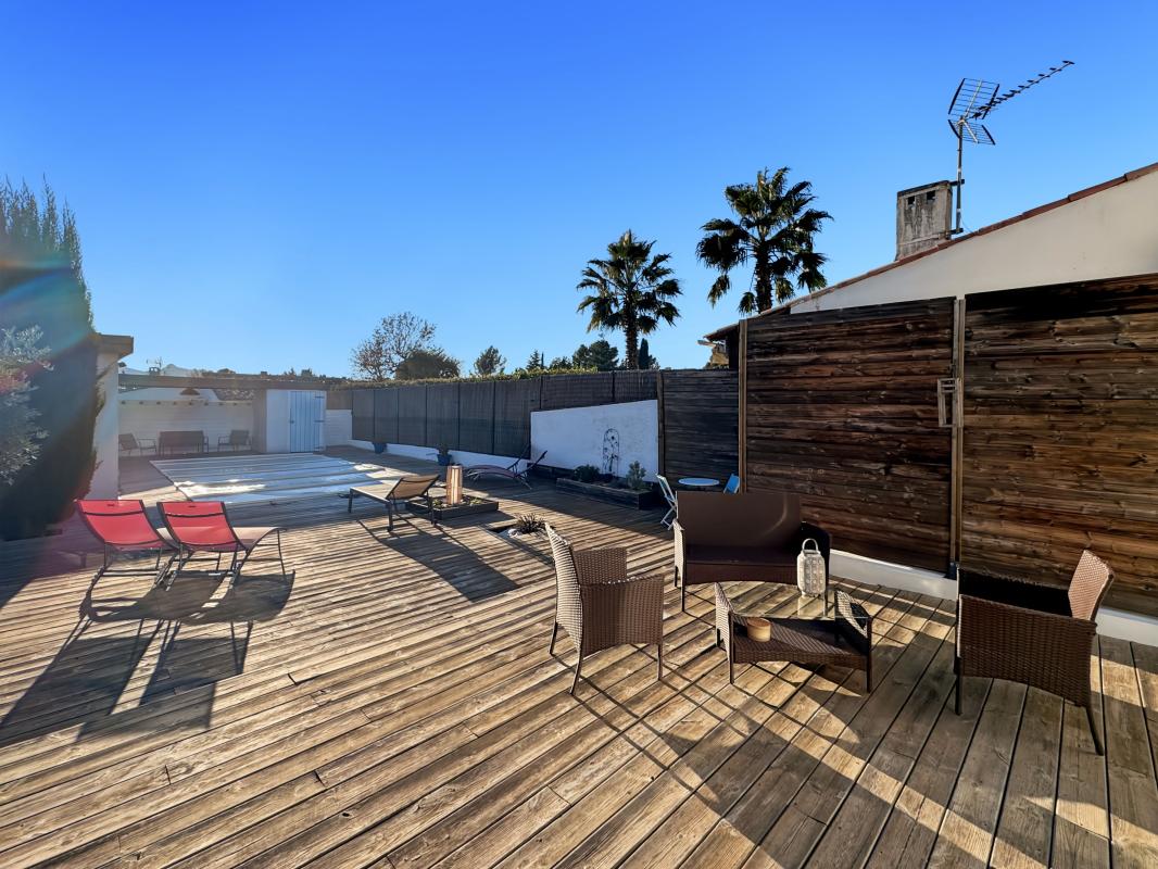 - ravissante maison individuelle de plain pied de 80 m2 environ composé de : 1 entrée, 1 grand salon séjour avec cuisine américaine équipée, 2 chambres dont une à l'étage, buanderie, salle d'eau et wc.