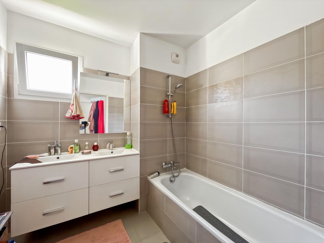 Côté nuit, deux chambres avec placards, une salle de bains avec fenêtre, ainsi qu'un WC séparé avec espace buanderie (machine à laver).