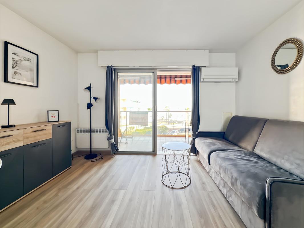 Charmant appartement de 2 pièces de 36 m² bénéficie d'un ascenseur et d'une triple exposition, offrant une terrasse ensoleillée sud-est avec vue sur la mer.