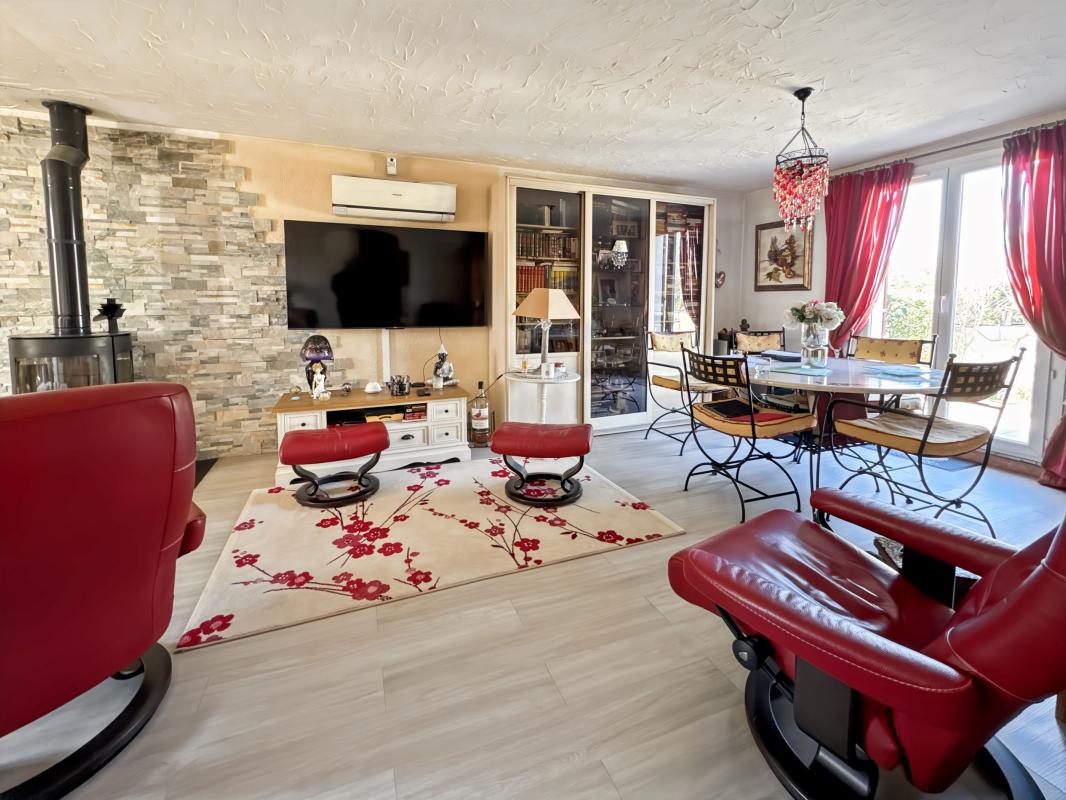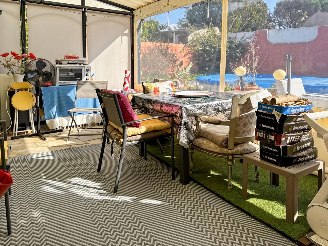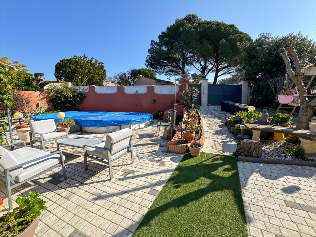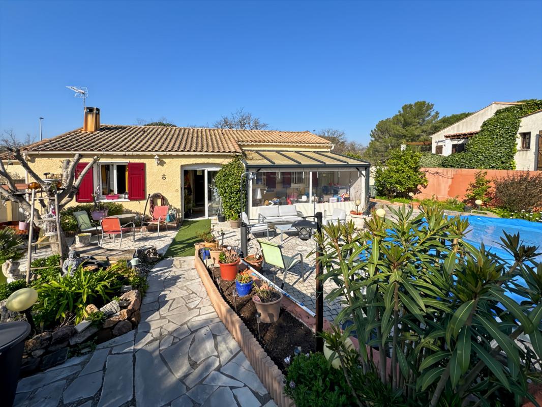 Édifiée sur une parcelle de 598 m2, cette villa possède également un garage (18.56 m2), un chalet abri jardin, et une piscine 7 X 5 avec filtration billes de verre.