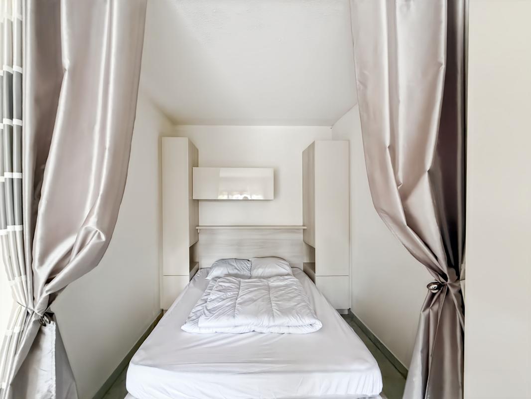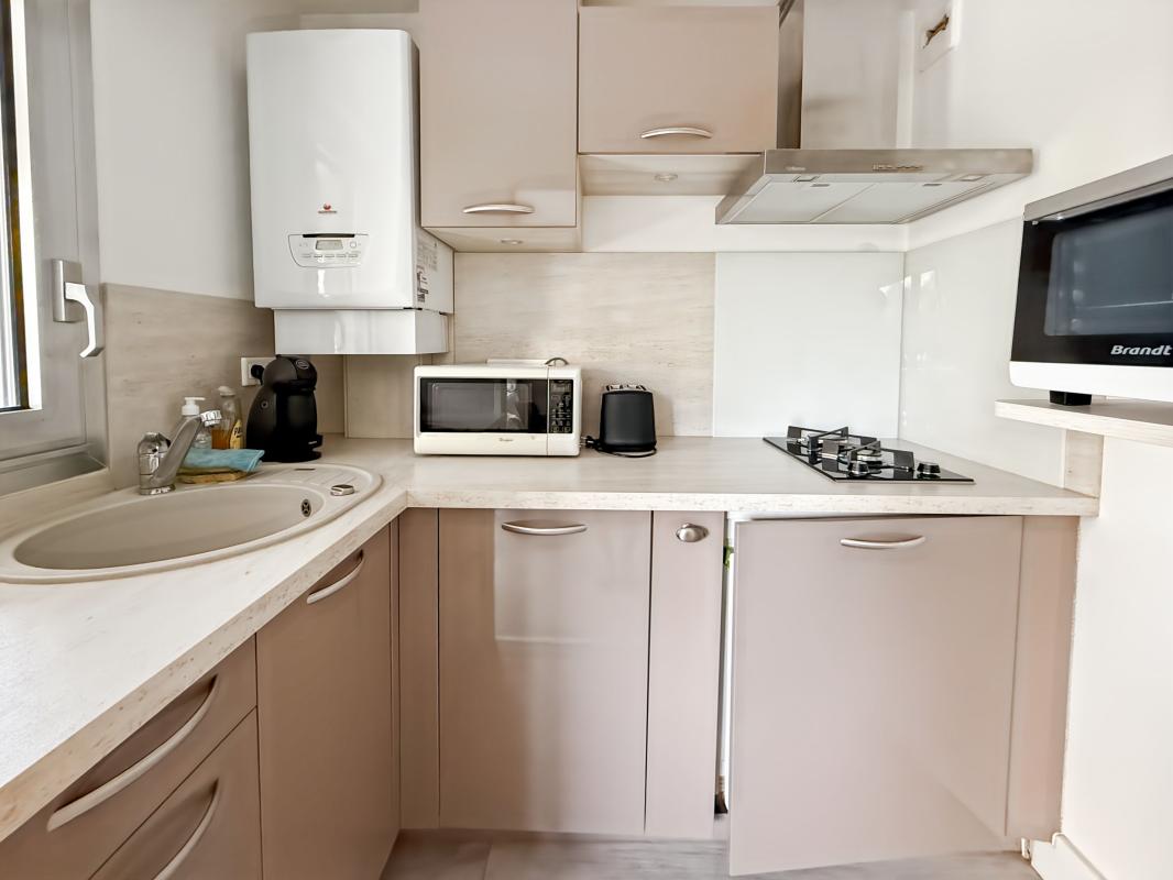 L'appartement comprend une entrée, un séjour avec un coin nuit, une kitchenette aménagée et entièrement équipée, une salle d'eau avec WC, ainsi qu'une belle terrasse avec vue sur les jardins de la résidence.