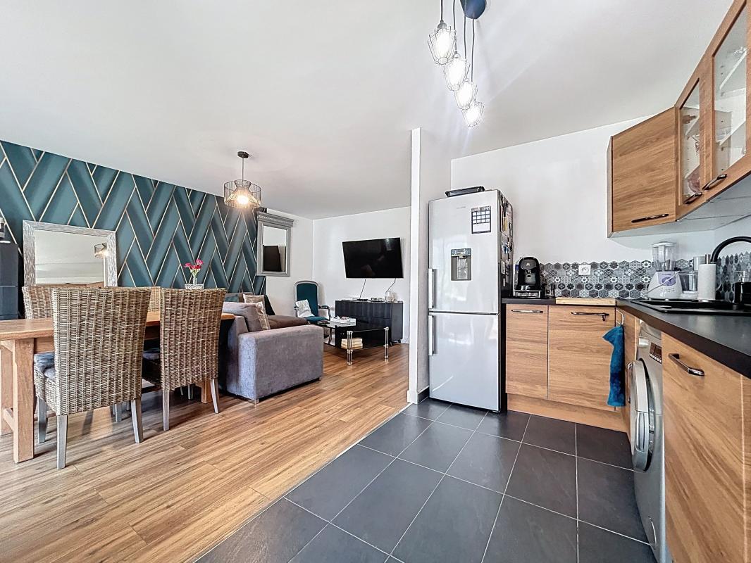 Appartement en rez de jardin de 59m² habitable comprenant un grand séjour avec cuisine attenante, aménagée et équipée, une chambre spacieuse,...